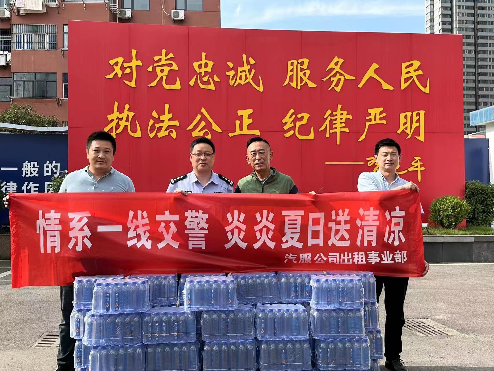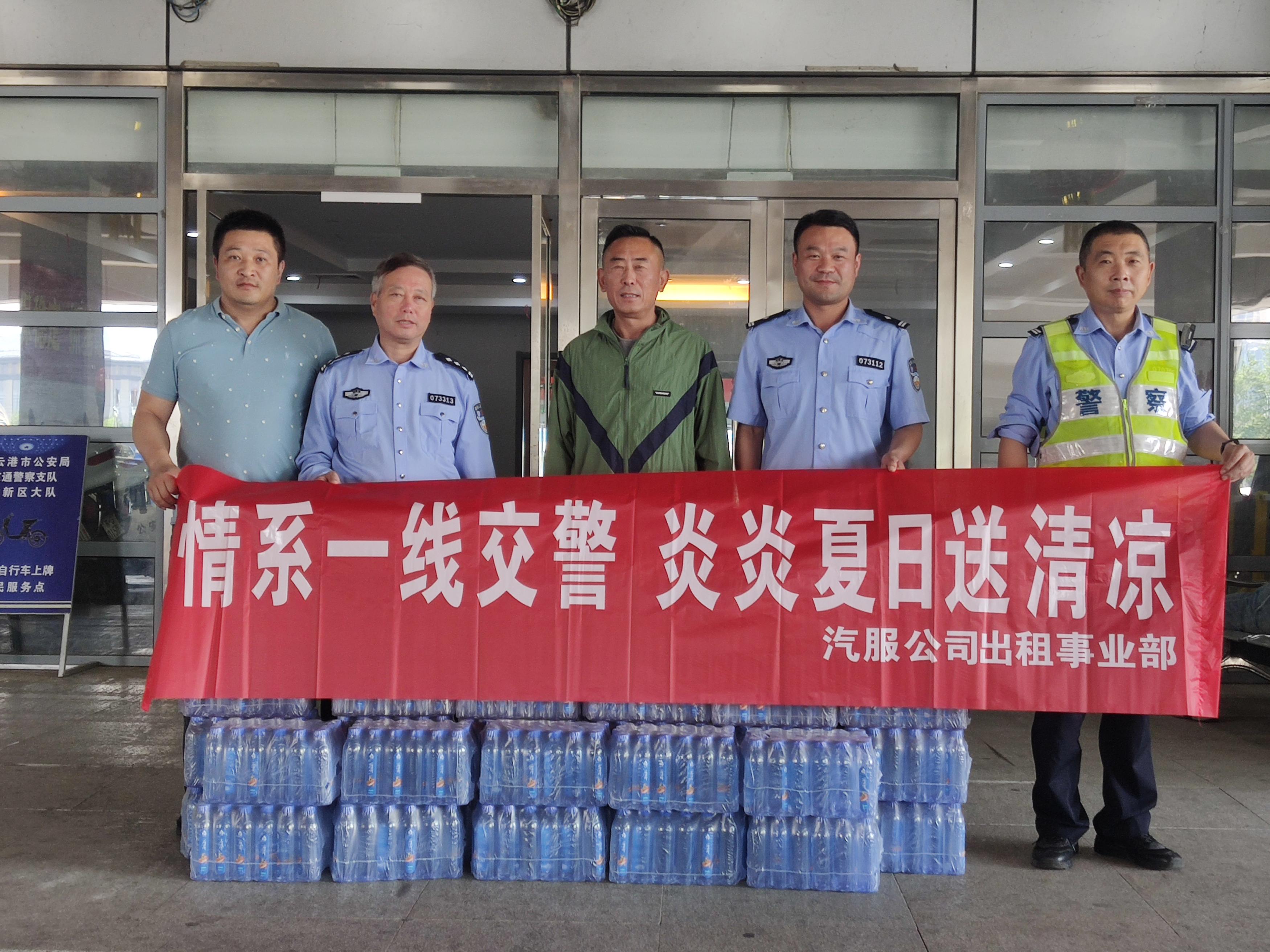 連日來(lái),連云港市高溫天氣持續(xù)不斷,酷熱難耐,一線交警們?cè)诿總(gè)繁忙的車流、人流中,冒著高溫,頂著酷暑,依舊堅(jiān)守維持交通秩序,為市民安全出行保駕護(hù)航,為表達(dá)對(duì)辛苦執(zhí)勤一線交警的敬意,6月6日上午,汽服公司安全保衛(wèi)處處長(zhǎng)梁洪春、出租汽車事業(yè)部相關(guān)一行人員為他們送上了清涼的飲用水、防曬用品等物資。
