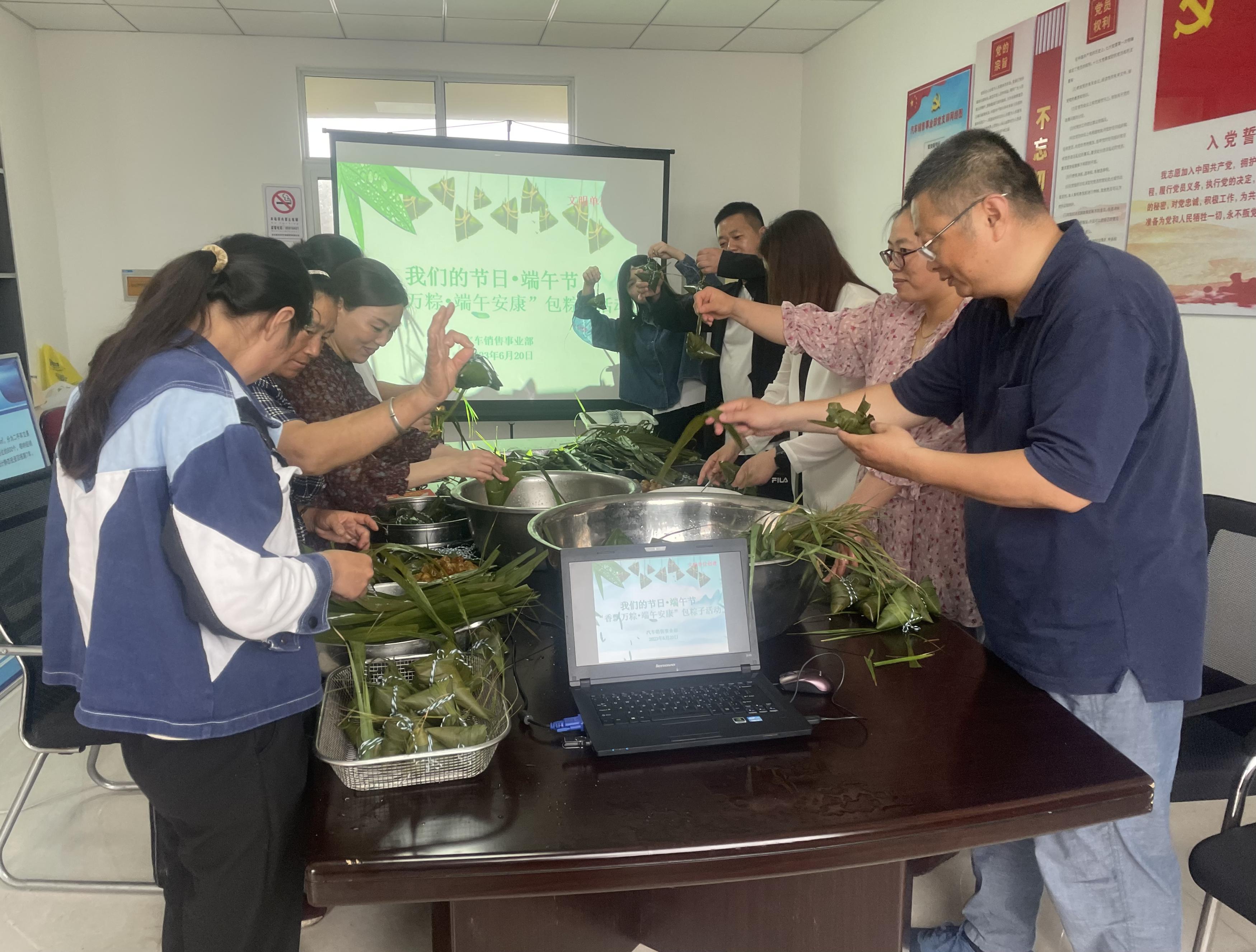 端午近,粽飄香,6月20日上午,在端午佳節(jié)來臨之際,汽車銷售事業(yè)部積極組織開展“香飄萬粽•端午安康”包粽子活動,各部門職工積極響應,共10名職工參加活動。