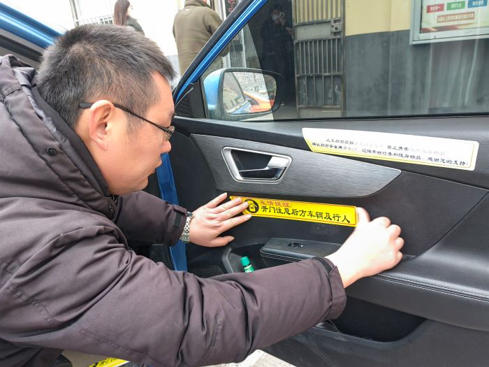 此次檢查,除了對出租車進行車容車貌、車況以及服務設施檢查外,還給車輛貼上了安全標貼,重點提醒駕駛員轉彎掉頭減速慢行注意避讓和乘客開門注意后方車輛及行人。