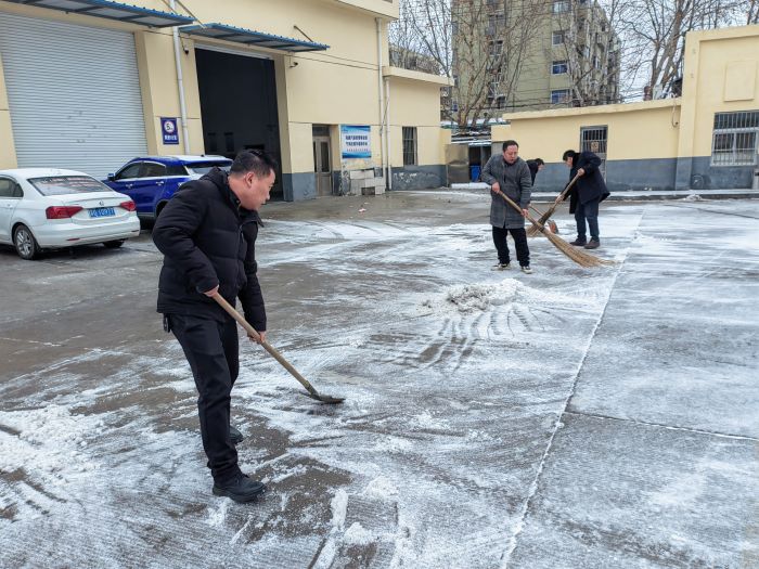 大家迎著寒風(fēng),揮舞著長長的鐵鍬、拿著寬寬的掃帚,齊心協(xié)力掃雪除冰,公司院內(nèi)不時(shí)傳出鐵鍬與地面的摩擦聲,夾雜著掃帚的沙沙聲,奏響了一曲掃雪歌。