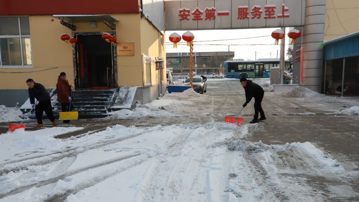 活動(dòng)現(xiàn)場,干部職工們不畏嚴(yán)寒、冒著颼颼襲來的雪花和寒風(fēng)或三五組隊(duì),或兩人協(xié)力,或一字排開協(xié)同推進(jìn),使勁揮動(dòng)著鐵鍬、掃帚等工具,將積雪集中堆放到路邊,盡管大家的臉都凍得通紅,但手中的掃雪工具卻不停,經(jīng)過不間斷多輪掃雪奮戰(zhàn),大家終于將公司的主要入口、主干道等地的積雪逐漸鏟除,有效消除了安全隱患,切實(shí)保障了廣大職工的出行安全和各項(xiàng)業(yè)務(wù)安全生產(chǎn),用實(shí)際行動(dòng)向職工和來公司的客戶傳遞了冬日的溫暖與關(guān)懷。