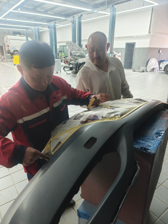在這個(gè)五月的車間里,何錫忠從底漆的涂抹技巧,講到面漆的光澤把控,毫無保留地傳授著自己的經(jīng)驗(yàn)。徒弟緊跟師傅的教導(dǎo),在實(shí)踐中不斷探索。他們在烤漆房旁的身影,不僅是簡單的師徒授業(yè),更是汽車維修行業(yè)工匠精神的延續(xù)。在日復(fù)一日地教導(dǎo)與學(xué)習(xí)中,他們?yōu)檐囕v的完美修復(fù)、為行業(yè)的發(fā)展貢獻(xiàn)著自己的力量。