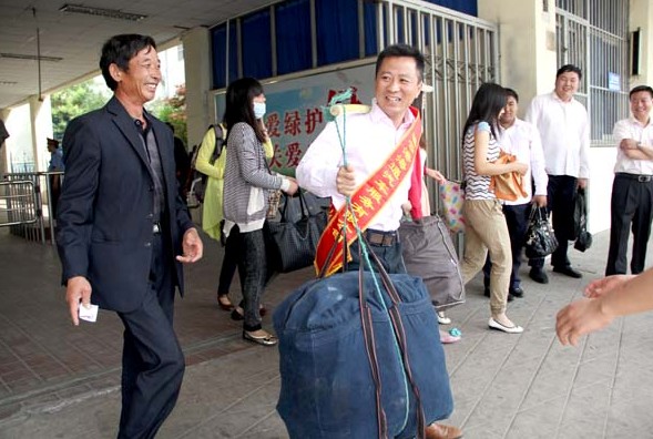 5月22日上午8:30分,50余名共青團員、入黨積極分子、"雷鋒的士"和"黨員的士"隊員齊聚新浦汽車總站,他們參觀"雷鋒車"組事跡展示館,觀看了大量珍貴照片及實物材料后,深深地被"雷鋒車"組50年如一日的無私奉獻精神折服。大家紛紛付諸行動加入到學(xué)勞模、趕先進行列。他們或是為車站義務(wù)勞動,為過安檢的旅客提拿行包;或是"爭當(dāng)雷鋒車手",為換乘車的旅客搬運行李,幫著攙扶老人及孩子進出站,在火車站出站口做引導(dǎo)員,人人興致勃勃,忙得不亦樂乎。