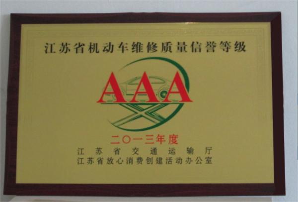 寧海公司獲2013年度省機(jī)動(dòng)車維修質(zhì)量信譽(yù)“AAA”等級(jí)