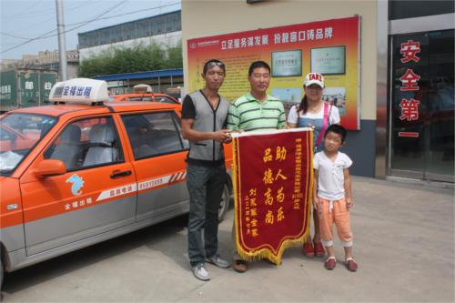“多虧了好心的哥房大林師傅,把孩子送回了家里,讓我一顆懸著的心落了下來!29日上午,家住南小區(qū)市民劉先生一家三口帶著錦旗及鞭炮專程趕到全福出租車公司,緊緊地握住的哥房大林師傅的手不愿松開。