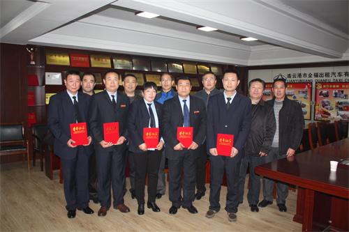 12月8日下午,市交通運(yùn)輸管理局運(yùn)輸管理處處長(zhǎng)、黨委書(shū)記李永春在市運(yùn)管處客運(yùn)科科長(zhǎng)于魯寧、韓剛的陪同下蒞臨全福公司為榮獲市“十大最美‘的哥的姐’”孫明福等6名出租汽車(chē)駕駛員頒發(fā)證書(shū)和獎(jiǎng)金。汽服公司總經(jīng)理趙士強(qiáng)、黨委書(shū)記劉元祥、全福公司班子成員及駕駛員代表參加了頒獎(jiǎng)活動(dòng)。
