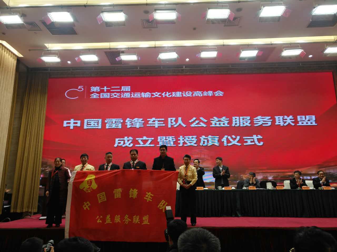 “雷鋒”精神始終是中華民族寶貴的精神財富和道德標尺。十八大以來,習近平總書記就學習弘揚雷鋒精神多次作出重要指示,強調“要做雷鋒精神的種子,讓雷鋒精神在全社會蔚然成風,世世代代弘揚下去。”。為了全面落實好習近平總書記重要講話精神,進一步擴大“雷鋒車隊”的社會影響力,弘揚雷鋒精神,樹立行業(yè)新風,江蘇省連云港汽車運輸總公司旅游出租分公司、北京銀山出租汽車公司等四家單位為代表向中國交通企業(yè)管理協會申請成立“全國雷鋒車隊公益服務聯盟”。中國交通企業(yè)管理協會召開會長辦公會議進行了專題研究,認為發(fā)揚和實踐雷鋒精神是落實黨的十九大提出的培育和踐行社會主義核心價值觀,結合時代要求繼承創(chuàng)新中華優(yōu)秀道德規(guī)范、行為規(guī)范和時代精神。雷鋒車隊發(fā)起公益服務聯盟,對促進各單位精神文明和文化建設,帶動整個交通運輸行業(yè)踐行社會主義核心價值觀都將起到積極的作用,同意聯盟在高峰會上正式發(fā)起成立倡議。高峰會上,全國“五一勞動獎章”獲得者、首都“的士雷鋒車隊”發(fā)起人,首任隊長王鳳進上臺發(fā)起了成立倡議,連汽“雷鋒的士”代理隊長等四家聯盟發(fā)起單位代表上臺參加了授旗。