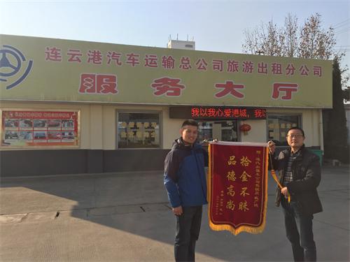 “感謝武廣德師傅,幫我挽回?fù)p失,避免了很多麻煩,謝謝!”遺落的“重要文件”失而復(fù)得,12月20日上午,失主武先生將一面“拾金不昧,品德高尚”的錦旗送到連汽出租公司,并連連致謝。