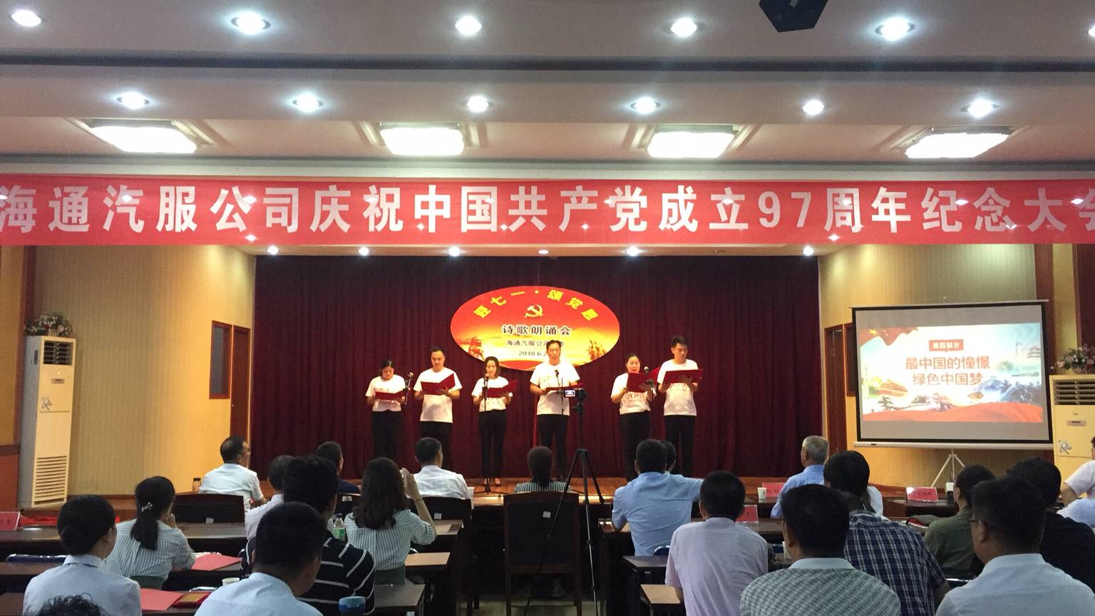 為迎接中國(guó)共產(chǎn)黨建黨97周年,6月29日下午,海通汽服公司黨委召開(kāi)了慶祝中國(guó)共產(chǎn)黨成立97周年紀(jì)念大會(huì)暨“迎七一 頌黨恩” 詩(shī)歌朗誦會(huì)。